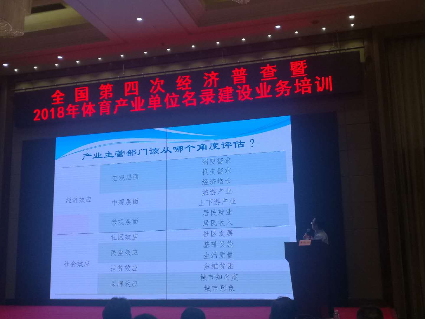 5月21日,国家体育总局主办的“全国第四次经济普查暨2018年体育产业单位名录库建设”会议在重庆召开,国家统计局副局长贾楠、国家体育总局经济司及其他相关中心领导、各省市体育局主管副局长和产业处处长参加了会议。永利yl23411官网副经理王裕雄副教授作为培训专家受邀出席会议,并以其研究团队所承担的国家体育总局委托课题“2017阿拉善英雄会经济社会综合效应评价”为例,向与会代表介绍如何对体育赛事的经济社会综合效应进行定量评价。